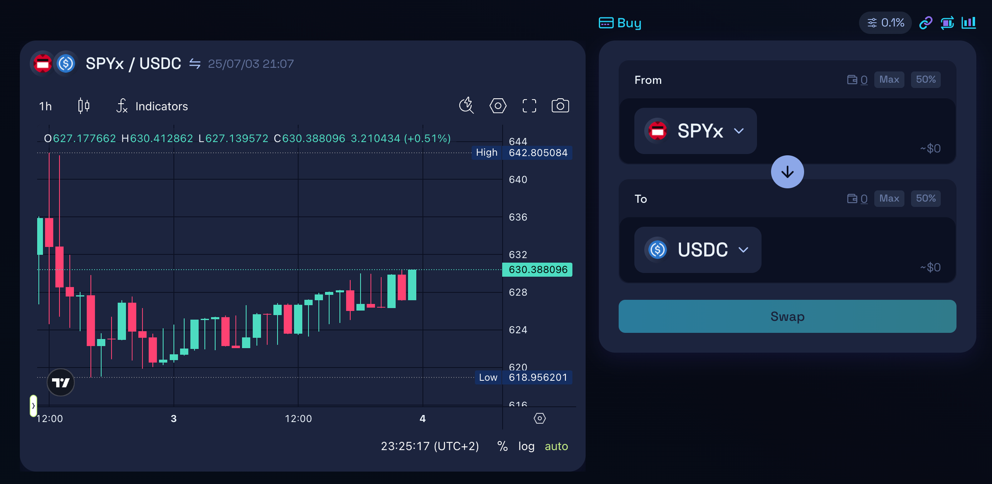 SP500 xStock (SPYx) tracks the price of SPDR S&P 500 ETF Trust (SPY). SPY is an exchange-traded fund that seeks to track the performance of the S&P 500 Index, representing 500 of the largest publicly traded companies in the U.S. It offers broad exposure to the U.S. equity market and is one of the most widely traded ETFs globally.
