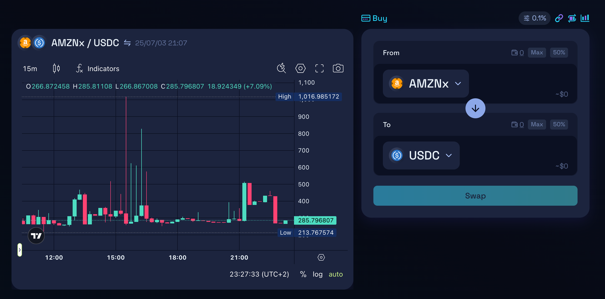 Imagine getting 1:1 economic exposure to Amazon, Tesla, Meta or even Google's share price — including dividends — without ever needing a traditional brokerage account. That’s exactly what has recently launched on the Solana blockchain. You can now buy and sell a select range of US equities on Raydium or Jupiter.